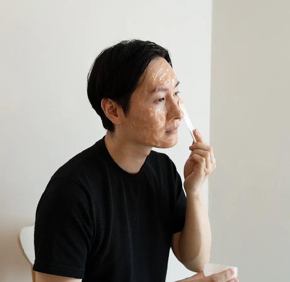 さらにパックはもっちりと固まり、手で簡単に剥がせます。洗い流す必要がないため、パック後のうるおいのある明るい印象をそのまま維持することができます。