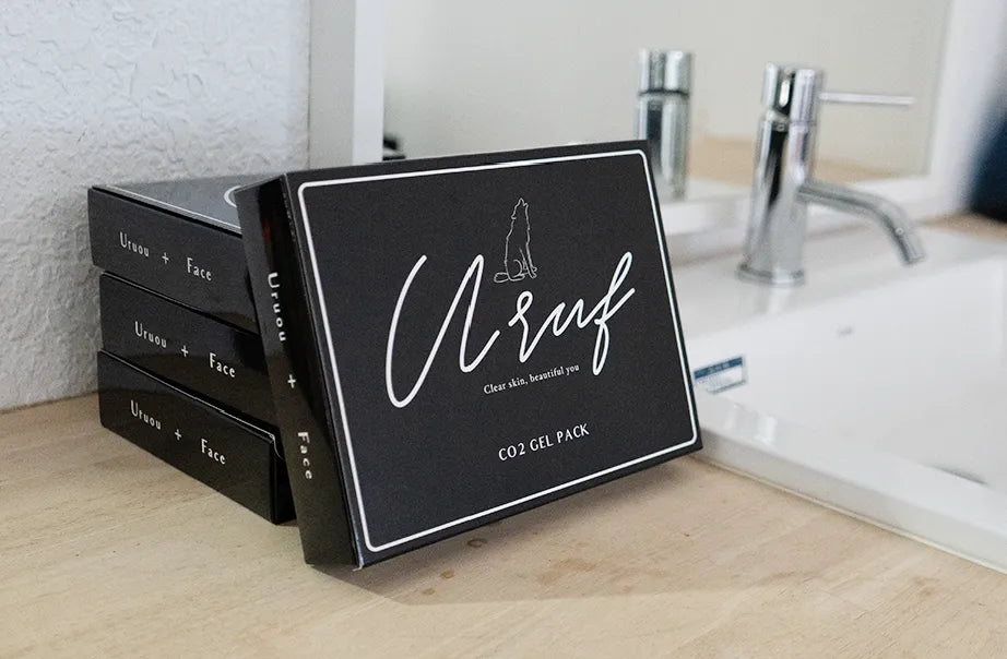 「高濃度炭酸ジェルパック」 「高濃度炭酸」と美容成分が贅沢に配合されたジェルが肌をしっかりと包み込み。お肌の本来持つパワーを引き出します。 Uruf 炭酸パック 持続時間3時間以上特許技術を用いて炭酸が3時間以上維持されます。これによりシュワシュワとせずにしっかりジェルに包まれた炭酸でお顔の有酸素運動を引き起こします。洗い流しは不要パックはもっちりと固まり手で簡単に剥がせます。洗い流さないため艶やかでピチピチのお肌をそのまま維持することができます。皮膚理論の科学的根拠に基づいて開発安全性、科学的根拠、効果の3つのプラットフォームをクリアした商品のみ製品化しています。